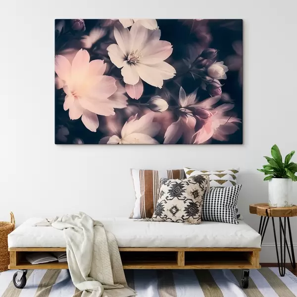 Peinture Fleurs vintage légères roses et blanches sur fond flou Art. s41084