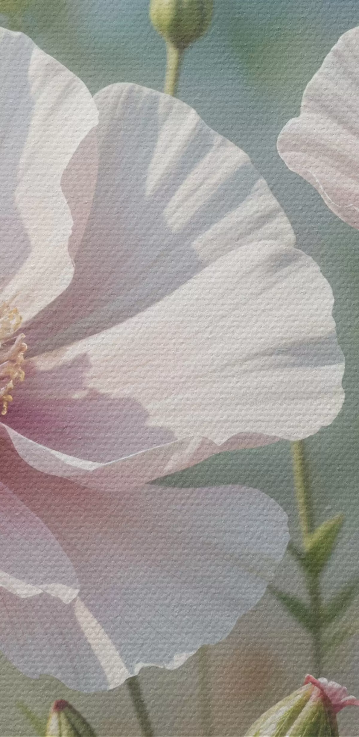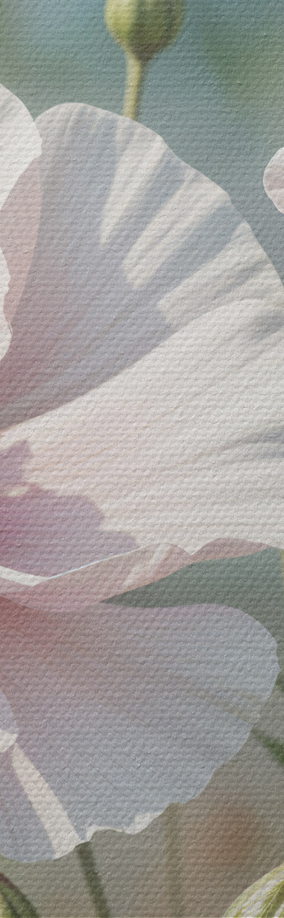 Peintures Un champ de délicates fleurs de pavot rose pâle aux pétales doux et ondulants sur un fond vert flou s41094