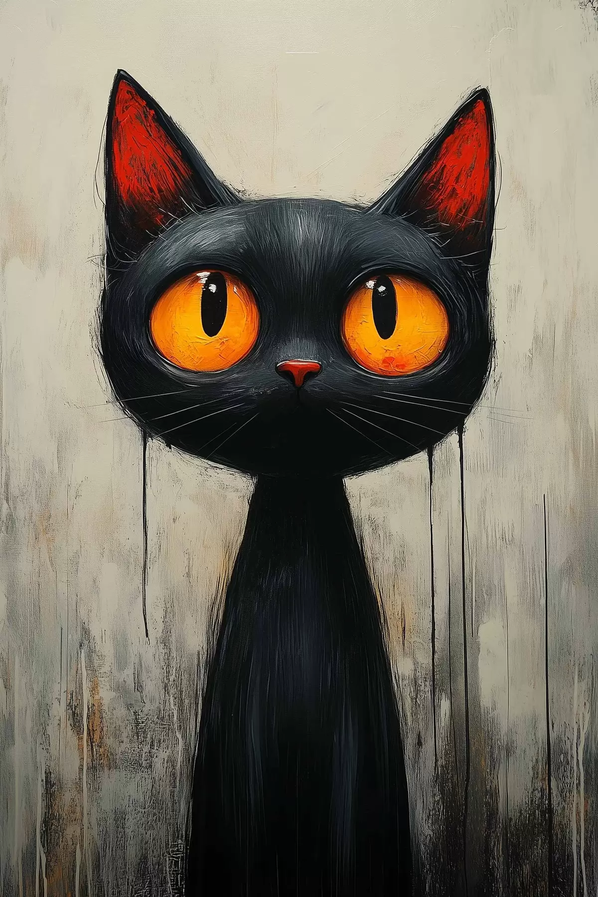 Peinture Chat aquarelle noir aux yeux jaunes Art. s41120