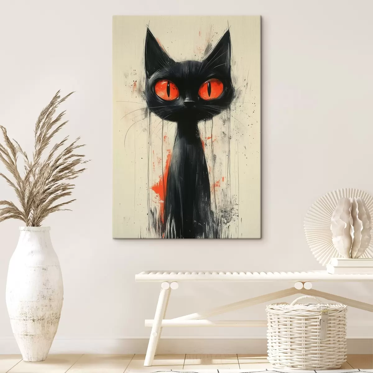 Peintures Chat noir dessiné à la main sur fond de taches d'aquarelle s41121