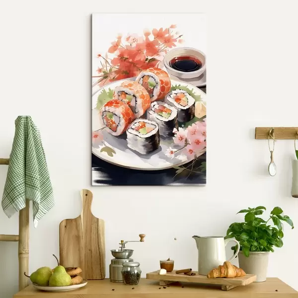 Peinture Sushi dans l'assiette, aquarelle, floral, japonais Art. s41179