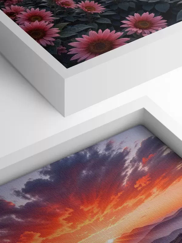 Trois types de matériaux peuvent être commandés : Economic Canvas - matériau dense et durable pour l'impression numérique, identique à la toile de peintre, surface imperméable, reproduction réaliste des détails, matériau à grain moyen. Premium Canvas - la texture ressemble à celle d'une toile de peintre (petits fils entrelacés). Reproduction douce et détaillée de l'image sur une surface mate. Eco-Premium - tissu 100 % coton de haute qualité. Grâce aux fibres naturelles de coton, le matériau est durable et résistant à l'usure. Excellente reproduction des couleurs et des détails.