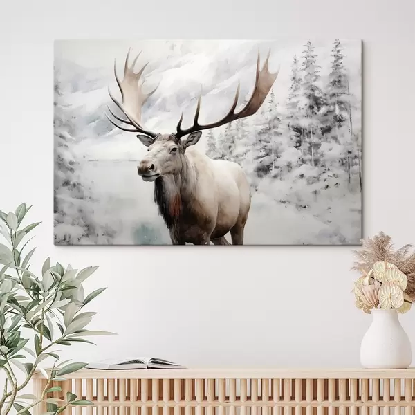 Peinture Elan sur fond de forêt hivernale dans la neige aquarelle Art. s41284
