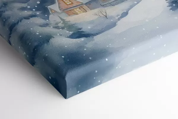 Peintures Aquarelle paysage d'hiver, forêt de pins, maisons s41387