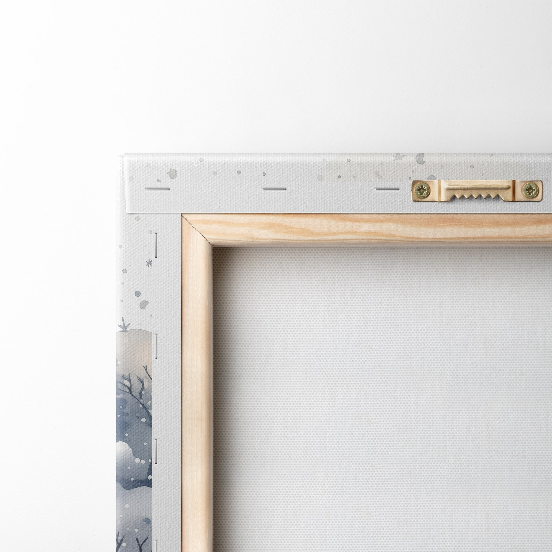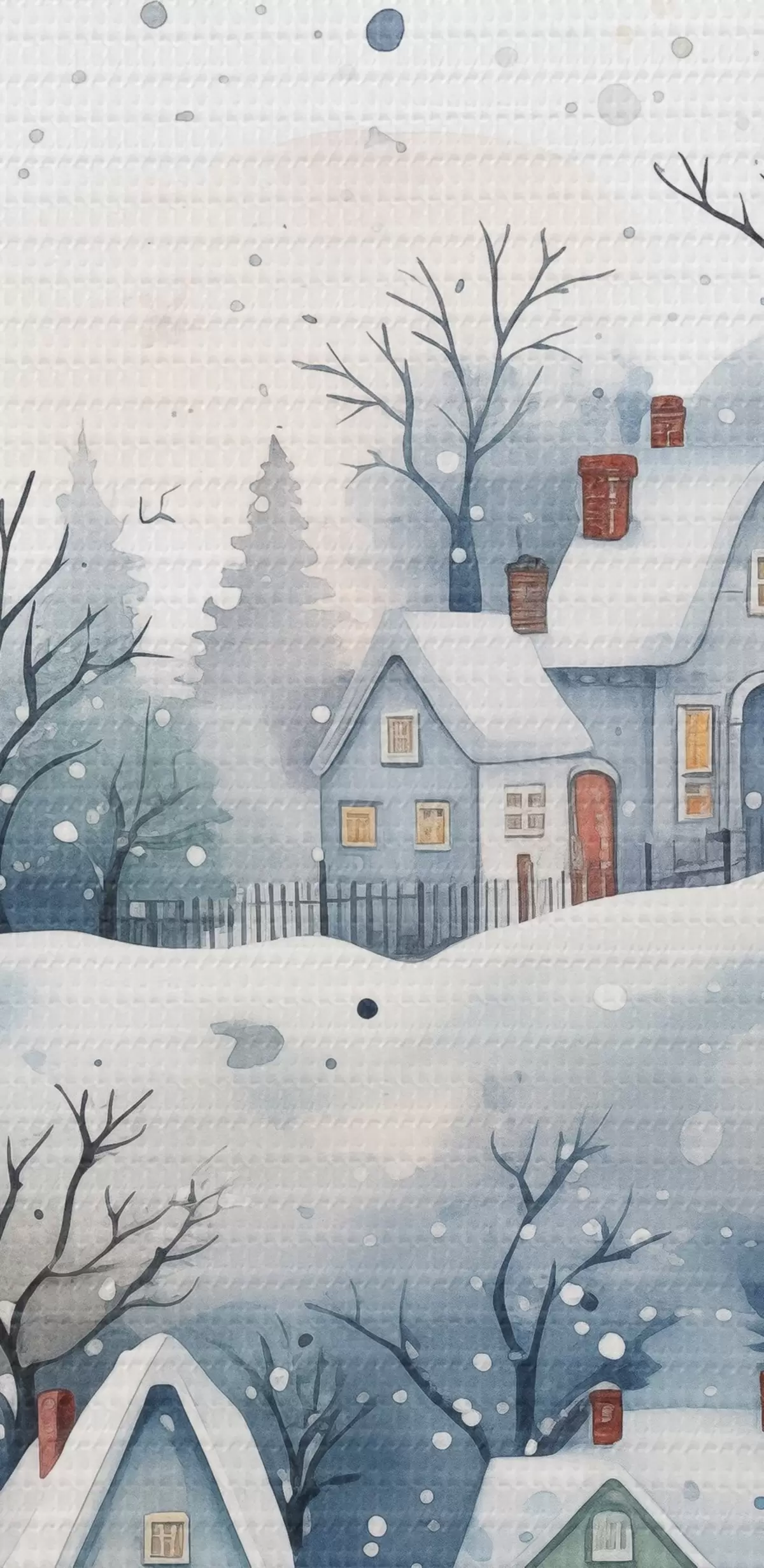 Peintures Aquarelle d'un paysage hivernal avec des maisons et une forêt de pins s41389