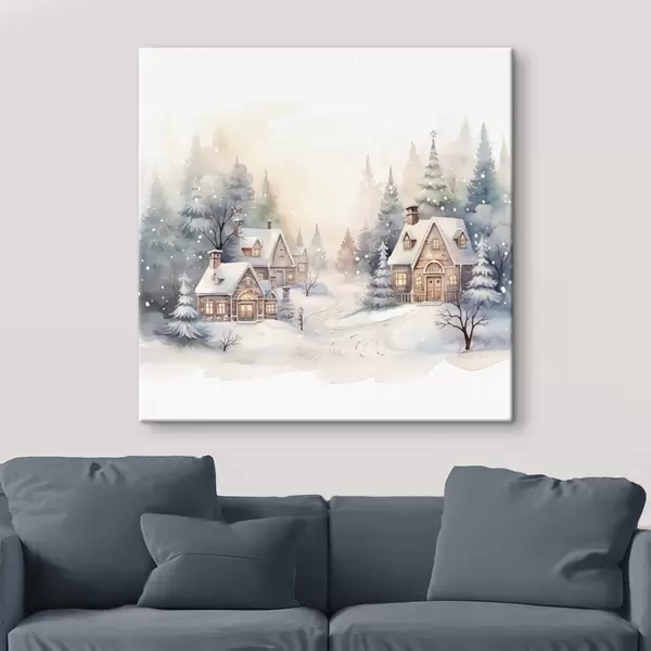 Peintures Paysage d'hiver, forêt de pins, belles maisons, aquarelle, susnet s41390