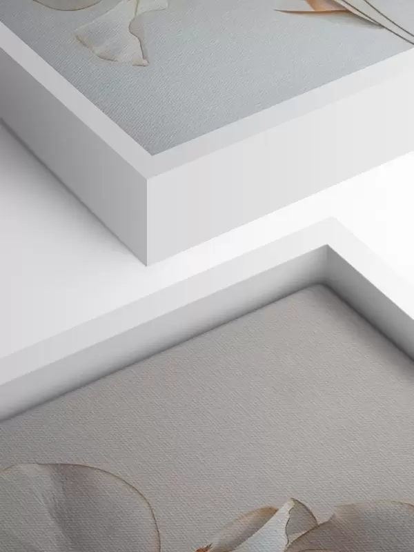 Trois types de matériaux peuvent être commandés : Economic Canvas - matériau dense et durable pour l'impression numérique, identique à la toile de peintre, surface imperméable, reproduction réaliste des détails, matériau à grain moyen. Premium Canvas - la texture ressemble à celle d'une toile de peintre (petits fils entrelacés). Reproduction douce et détaillée de l'image sur une surface mate. Eco-Premium - tissu 100 % coton de haute qualité. Grâce aux fibres naturelles de coton, le matériau est durable et résistant à l'usure. Excellente reproduction des couleurs et des détails.