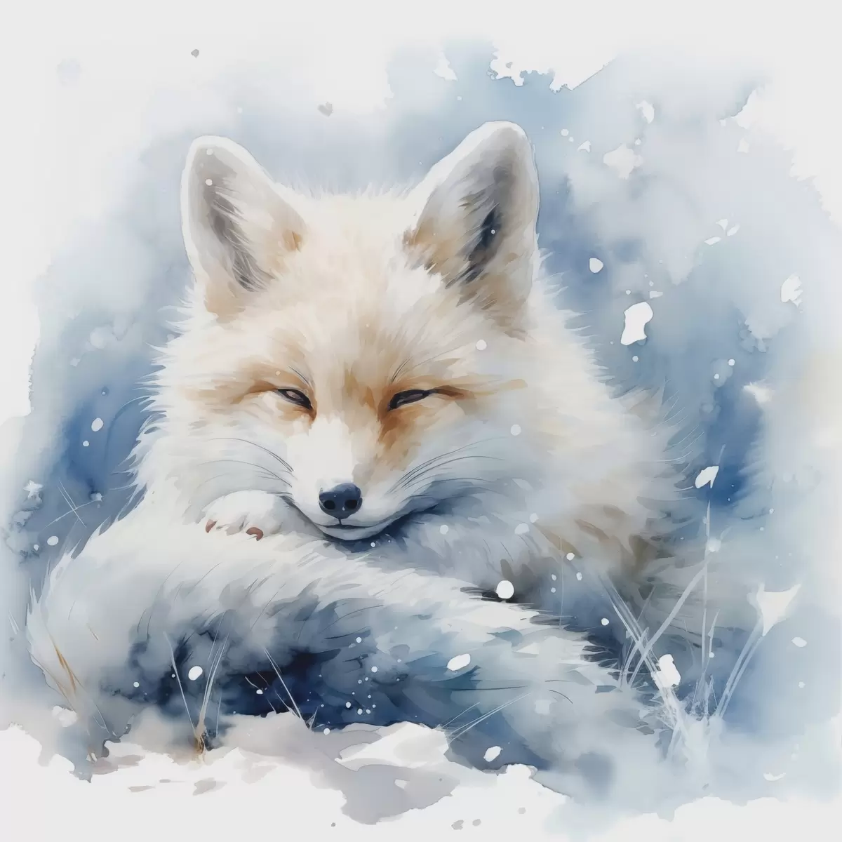 Peintures Renard dans la neige imitation d'une illustration aquarelle s41436