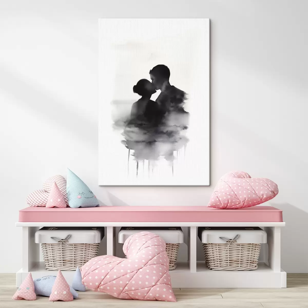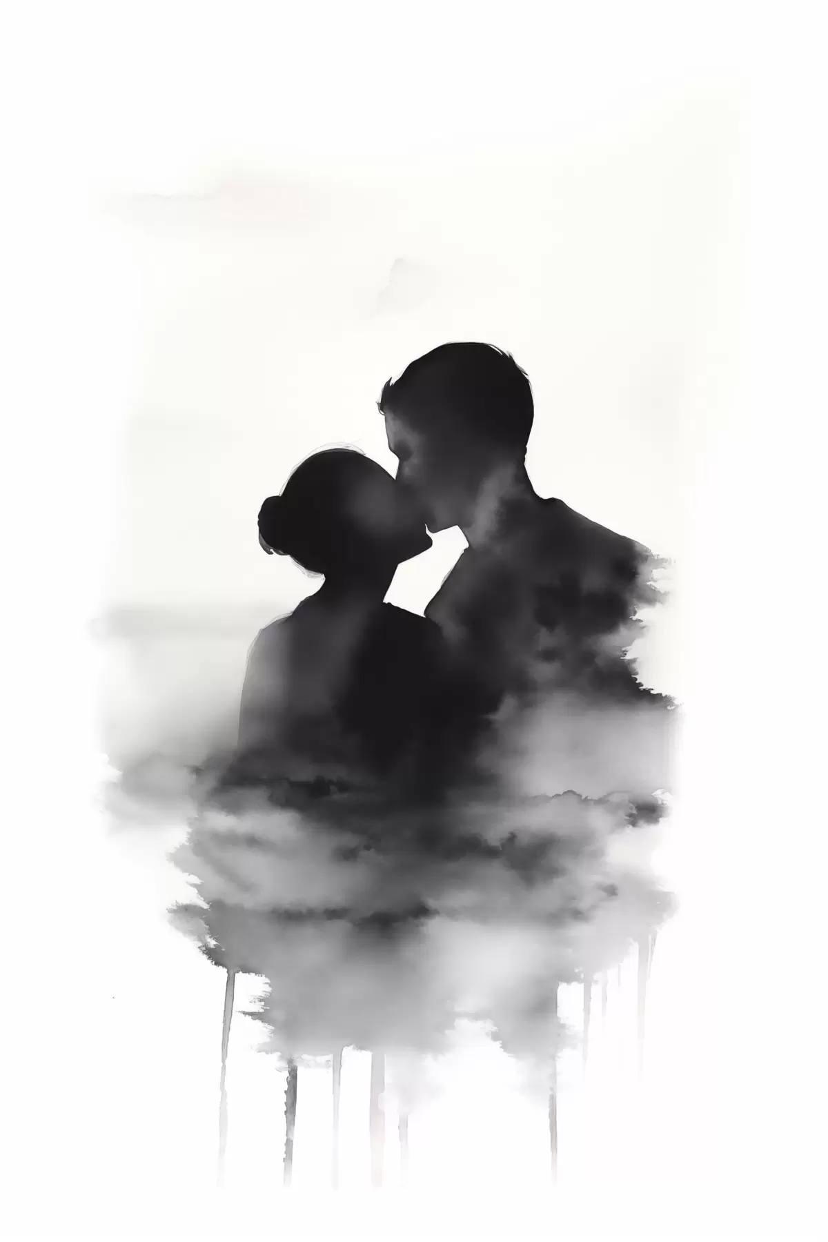 Peinture Silhouette d'un couple en technique d'aquarelle en noir et blanc Art. s41496