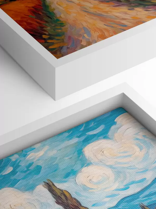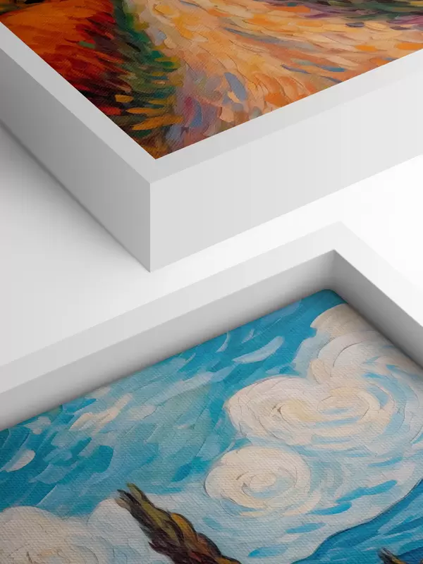 Trois types de matériaux peuvent être commandés : Economic Canvas - matériau dense et durable pour l'impression numérique, identique à la toile de peintre, surface imperméable, reproduction réaliste des détails, matériau à grain moyen. Premium Canvas - la texture ressemble à celle d'une toile de peintre (petits fils entrelacés). Reproduction douce et détaillée de l'image sur une surface mate. Eco-Premium - tissu 100 % coton de haute qualité. Grâce aux fibres naturelles de coton, le matériau est durable et résistant à l'usure. Excellente reproduction des couleurs et des détails.