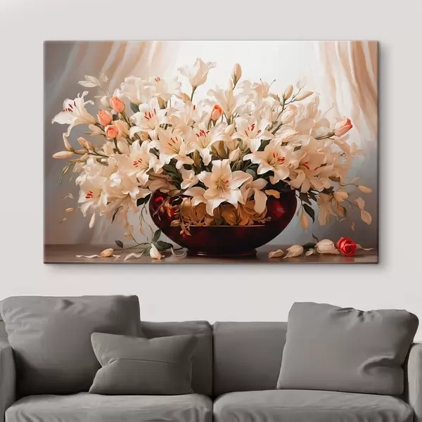Peinture Bouquet de fleurs dans un vase volumétrique rouge Art. s41510