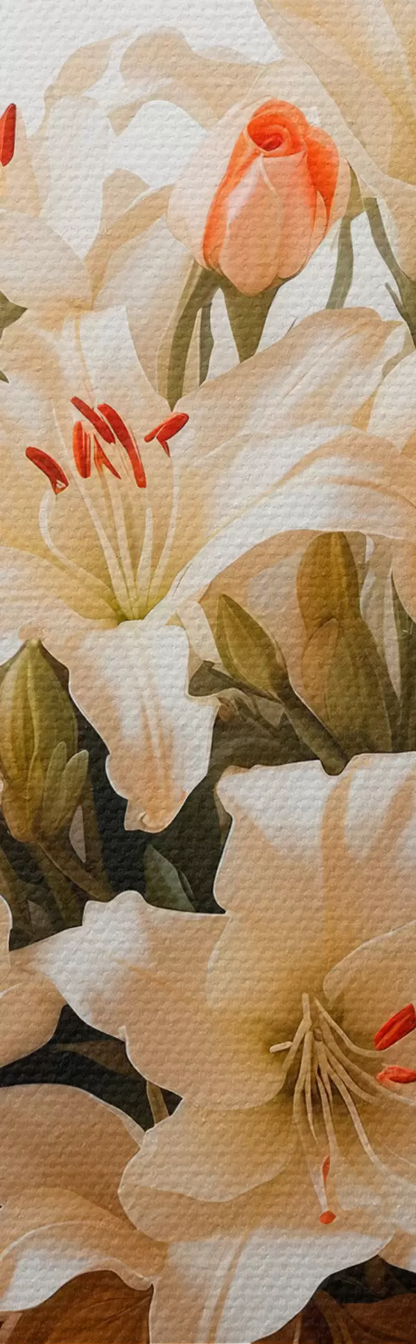 Trois types de matériaux peuvent être commandés : Economic Canvas - matériau dense et durable pour l'impression numérique, identique à la toile de peintre, surface imperméable, reproduction réaliste des détails, matériau à grain moyen. Premium Canvas - la texture ressemble à celle d'une toile de peintre (petits fils entrelacés). Reproduction douce et détaillée de l'image sur une surface mate. Eco-Premium - tissu 100 % coton de haute qualité. Grâce aux fibres naturelles de coton, le matériau est durable et résistant à l'usure. Excellente reproduction des couleurs et des détails.