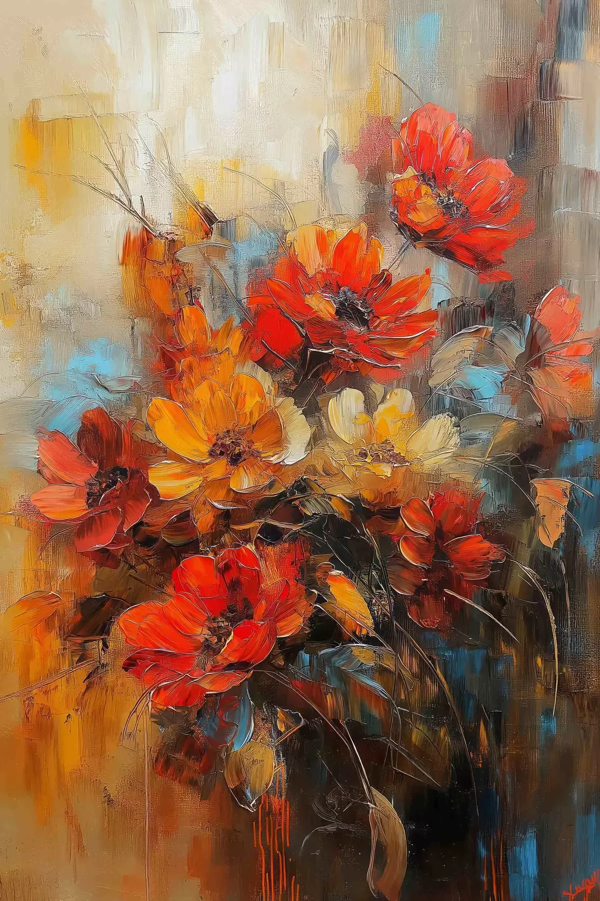 Peinture fleurs rouges à la peinture à l'huile Art. s41625