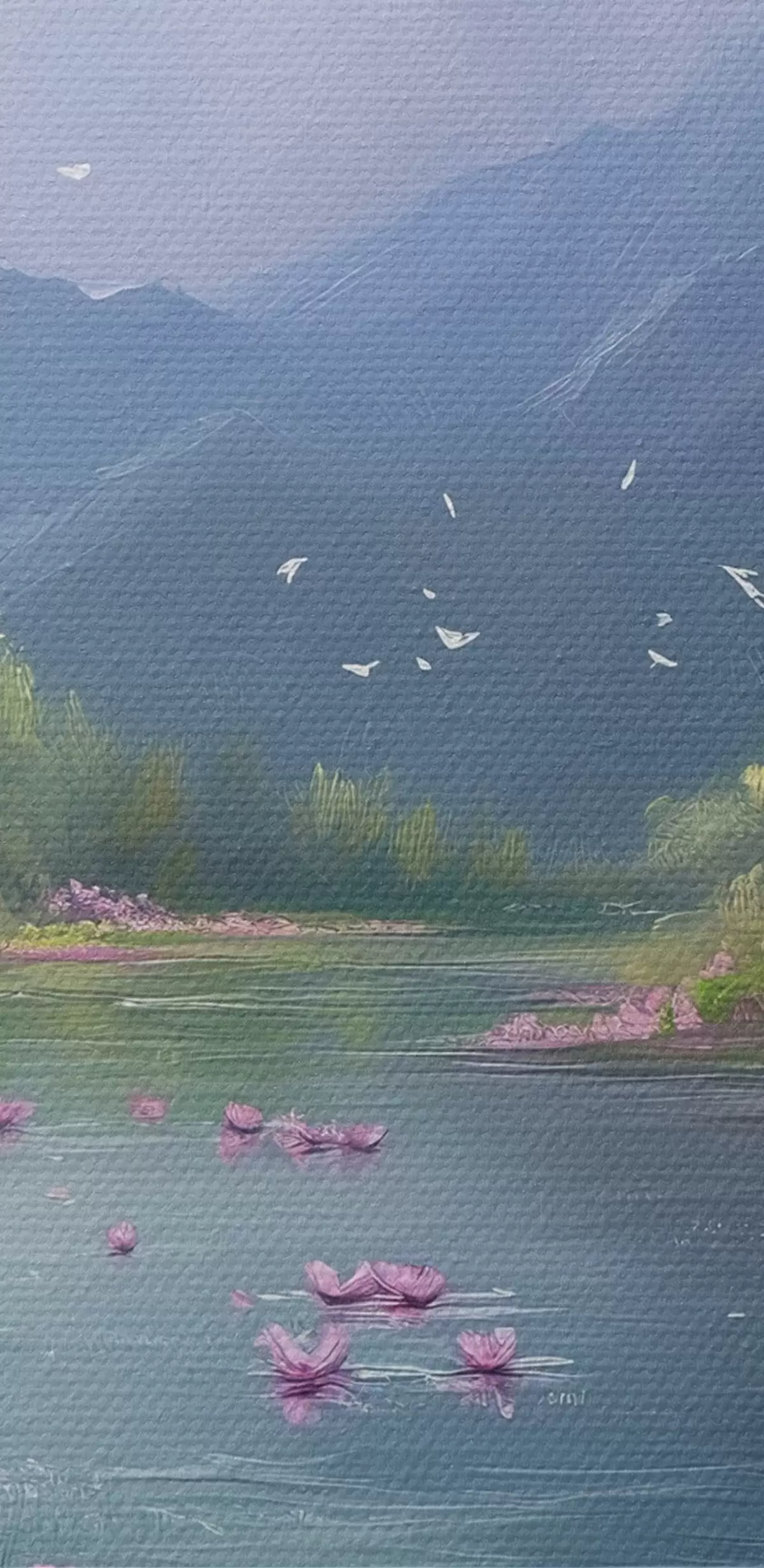 Le tableau peut être accroché immédiatement après réception. Le tableau est tendu sur un châssis en bois de 2 cm de large.
