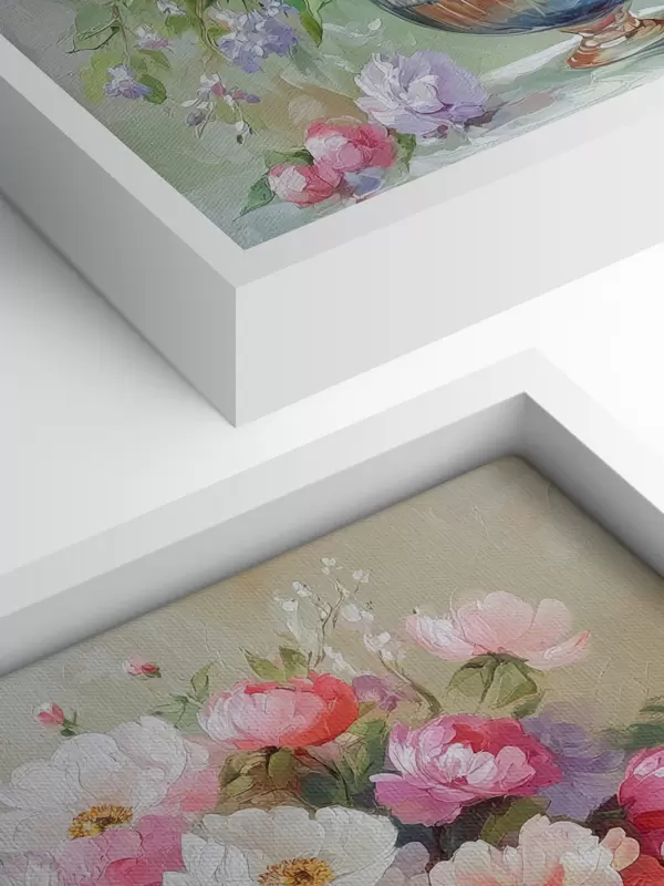 Trois types de matériaux peuvent être commandés : Economic Canvas - matériau dense et durable pour l'impression numérique, identique à la toile de peintre, surface imperméable, reproduction réaliste des détails, matériau à grain moyen. Premium Canvas - la texture ressemble à celle d'une toile de peintre (petits fils entrelacés). Reproduction douce et détaillée de l'image sur une surface mate. Eco-Premium - tissu 100 % coton de haute qualité. Grâce aux fibres naturelles de coton, le matériau est durable et résistant à l'usure. Excellente reproduction des couleurs et des détails.