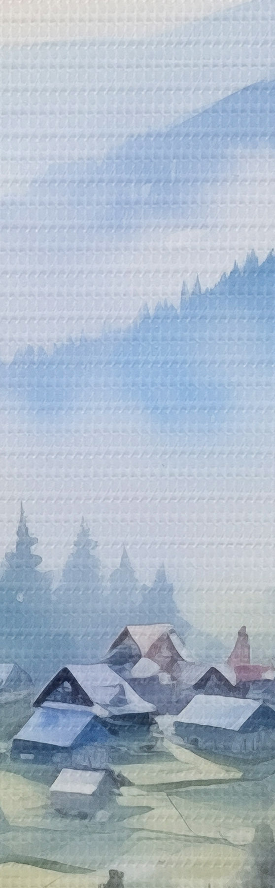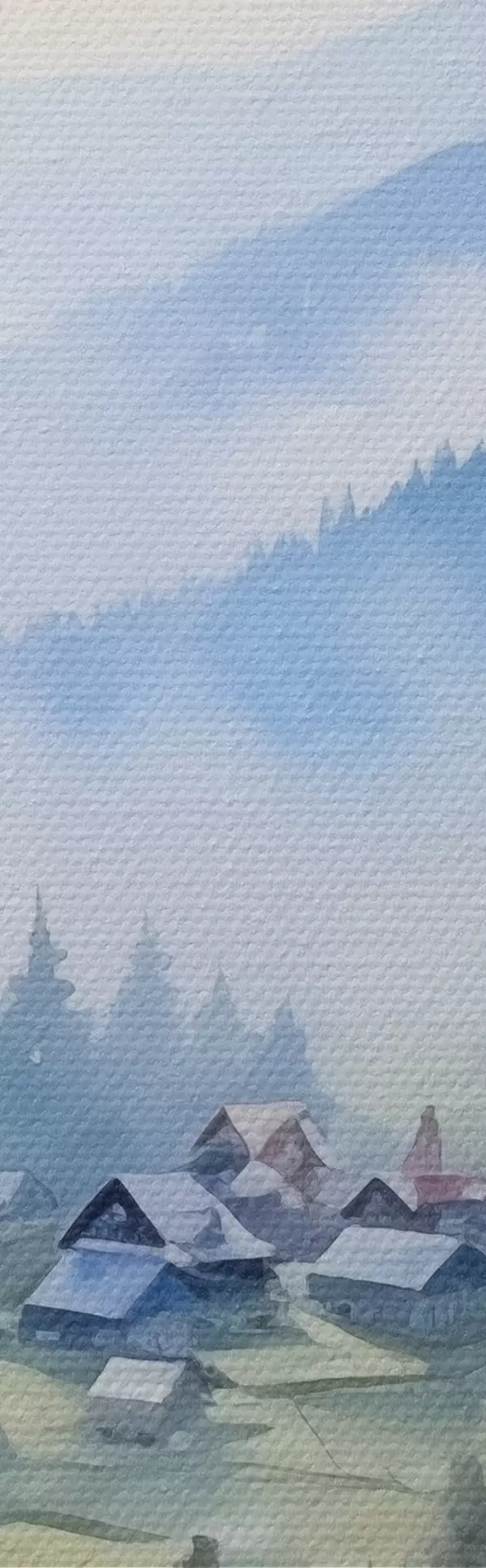 Peinture Village des Carpates dans les montagnes brumeuses, forêt, aquarelle Art. s41648