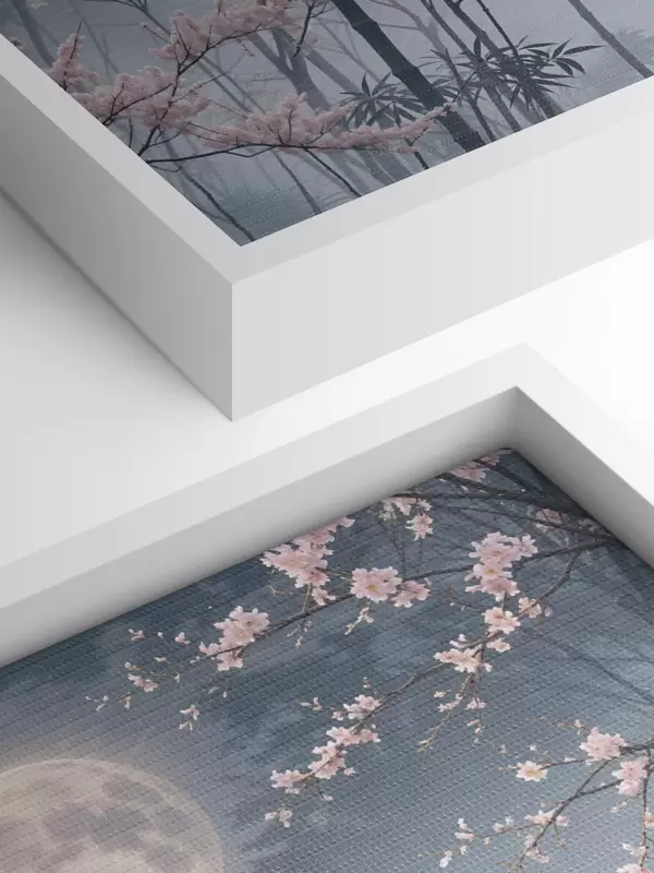 Peintures Une pleine lune dans un ciel nocturne, entourée de silhouettes de bambous et de branches de cerisiers en fleurs s41717