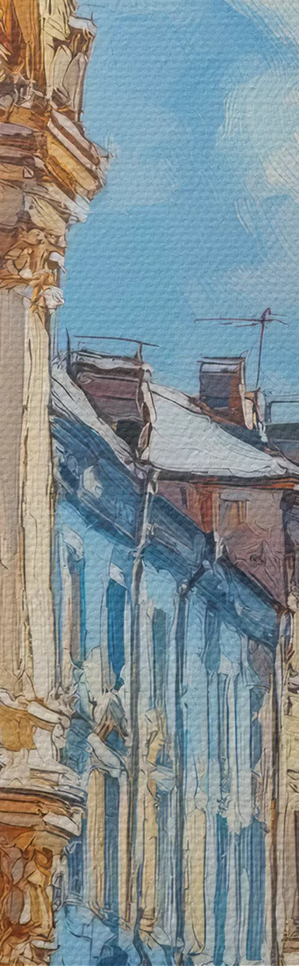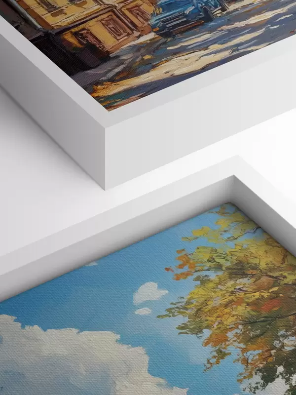 Trois types de matériaux peuvent être commandés : Economic Canvas - matériau dense et durable pour l'impression numérique, identique à la toile de peintre, surface imperméable, reproduction réaliste des détails, matériau à grain moyen. Premium Canvas - la texture ressemble à celle d'une toile de peintre (petits fils entrelacés). Reproduction douce et détaillée de l'image sur une surface mate. Eco-Premium - tissu 100 % coton de haute qualité. Grâce aux fibres naturelles de coton, le matériau est durable et résistant à l'usure. Excellente reproduction des couleurs et des détails.