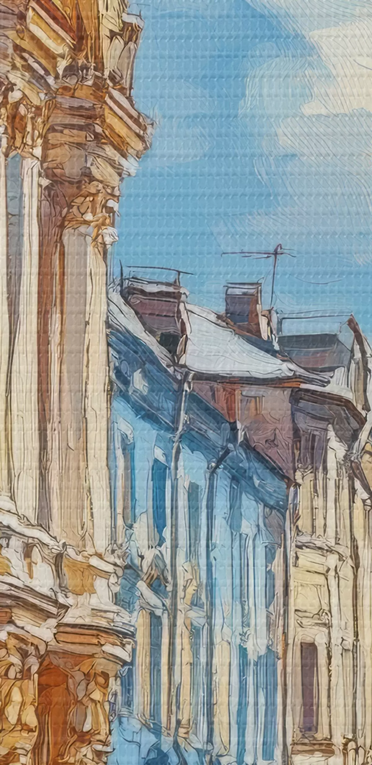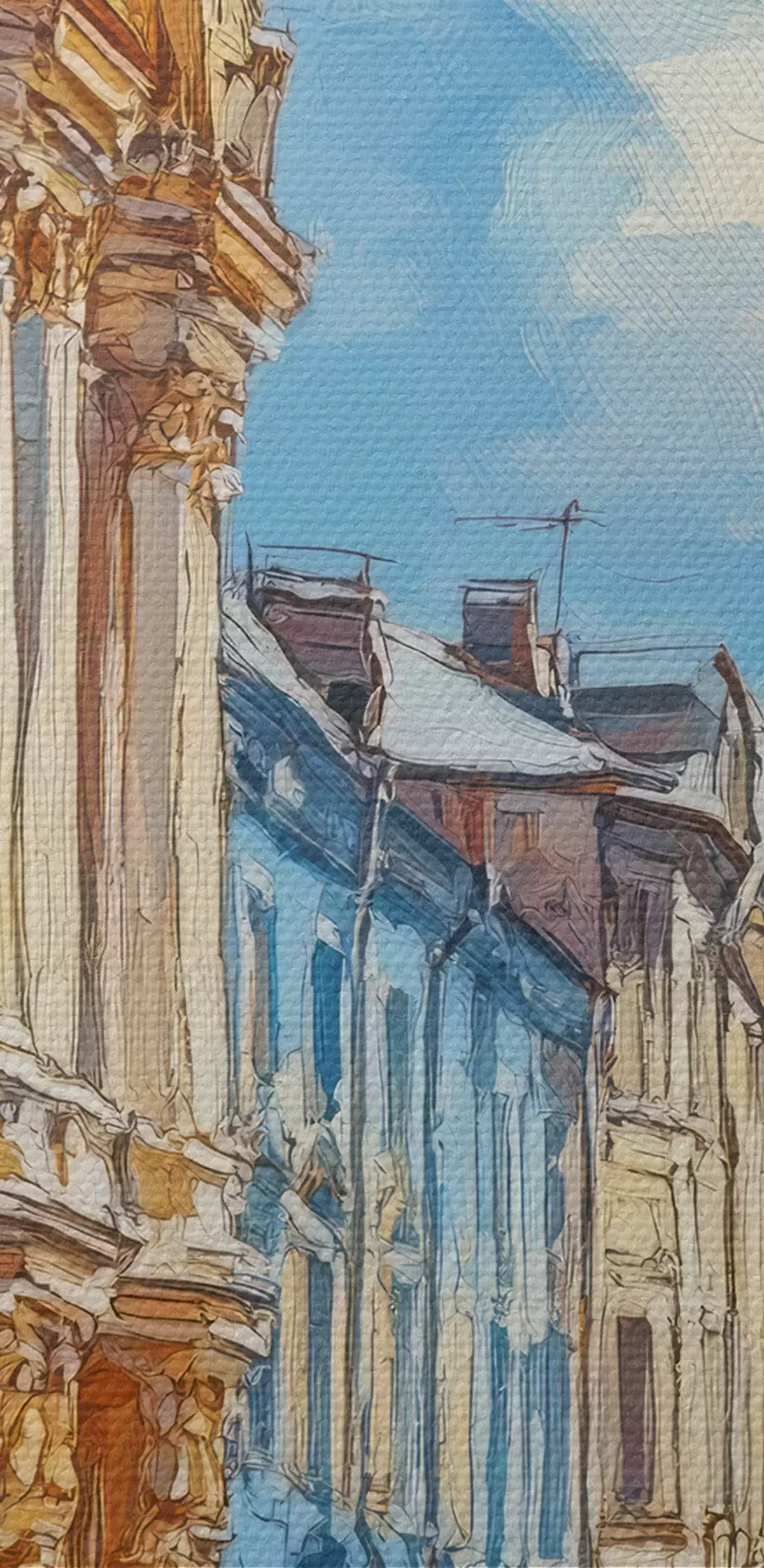 Peintures Rue de la ville par une journée ensoleillée, dans le style de la peinture à l'huile s41751