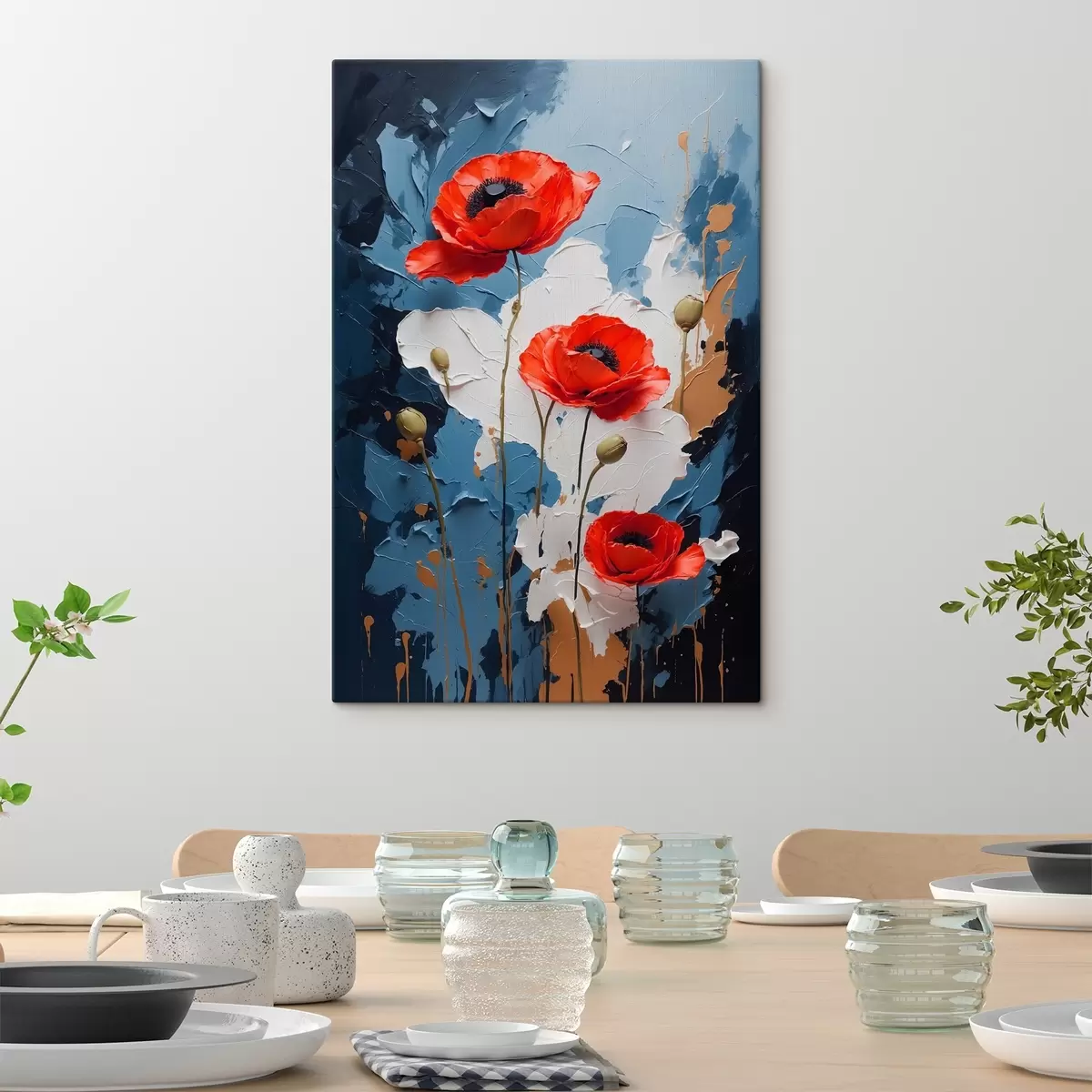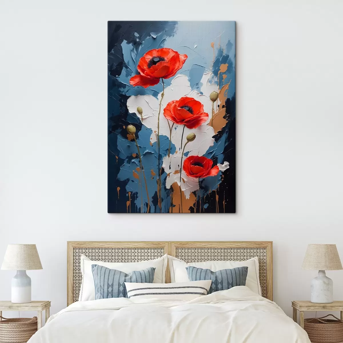 Trois types de matériaux peuvent être commandés : Economic Canvas - matériau dense et durable pour l'impression numérique, identique à la toile de peintre, surface imperméable, reproduction réaliste des détails, matériau à grain moyen. Premium Canvas - la texture ressemble à celle d'une toile de peintre (petits fils entrelacés). Reproduction douce et détaillée de l'image sur une surface mate. Eco-Premium - tissu 100 % coton de haute qualité. Grâce aux fibres naturelles de coton, le matériau est durable et résistant à l'usure. Excellente reproduction des couleurs et des détails.