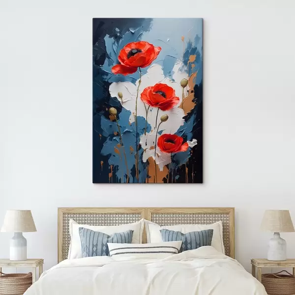 Peinture Coquelicots sur fond abstrait multicolore dans le style de la peinture à l'huile Art. s41765