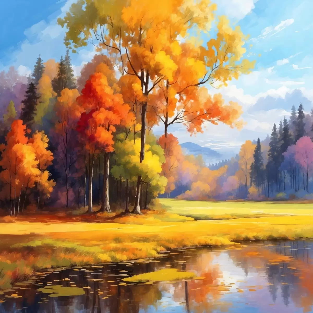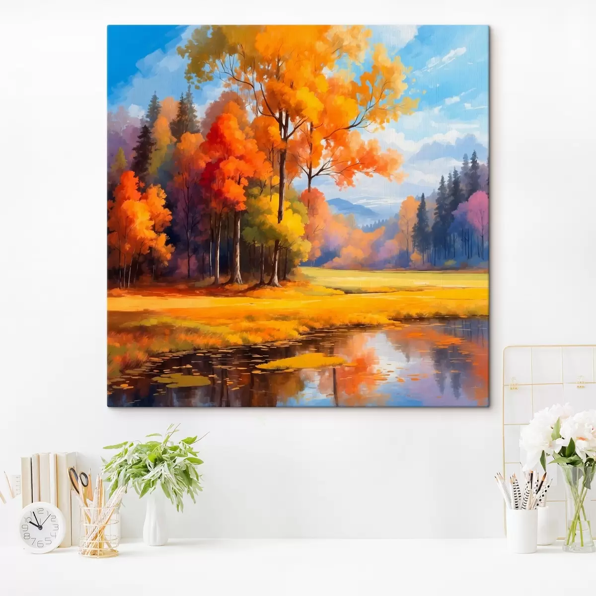 Peinture Lac et forêt d'automne en style acrylique Art. s41766