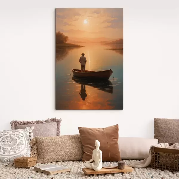 Peintures Homme dans un bateau au milieu d'un lac s41770