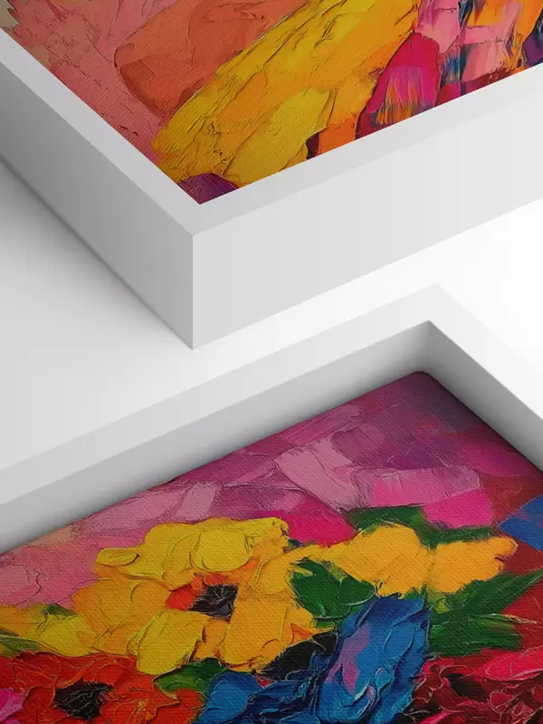 Trois types de matériaux peuvent être commandés : Economic Canvas - matériau dense et durable pour l'impression numérique, identique à la toile de peintre, surface imperméable, reproduction réaliste des détails, matériau à grain moyen. Premium Canvas - la texture ressemble à celle d'une toile de peintre (petits fils entrelacés). Reproduction douce et détaillée de l'image sur une surface mate. Eco-Premium - tissu 100 % coton de haute qualité. Grâce aux fibres naturelles de coton, le matériau est durable et résistant à l'usure. Excellente reproduction des couleurs et des détails.