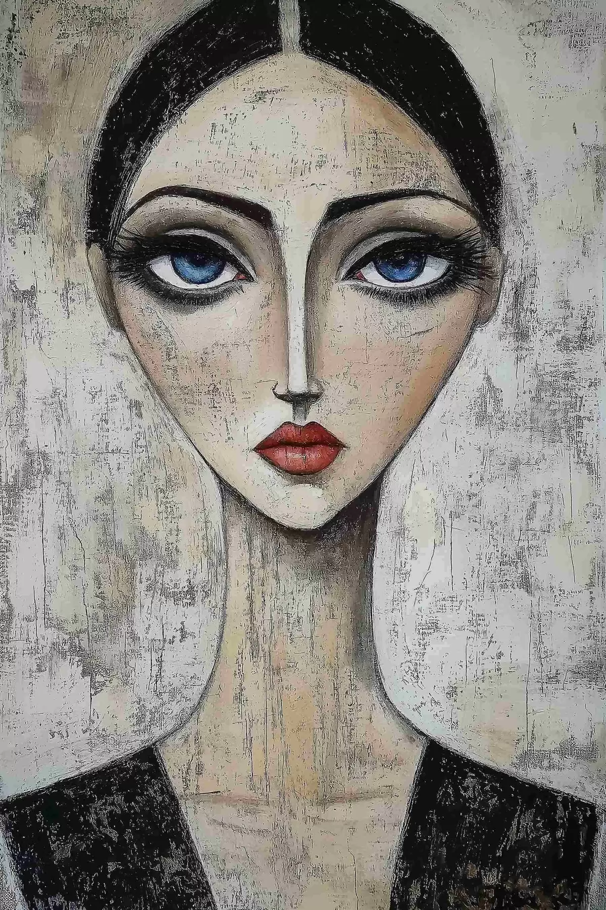 Peinture Portrait d'une femme aux yeux expressifs dans une technique stylisée Art. s41811