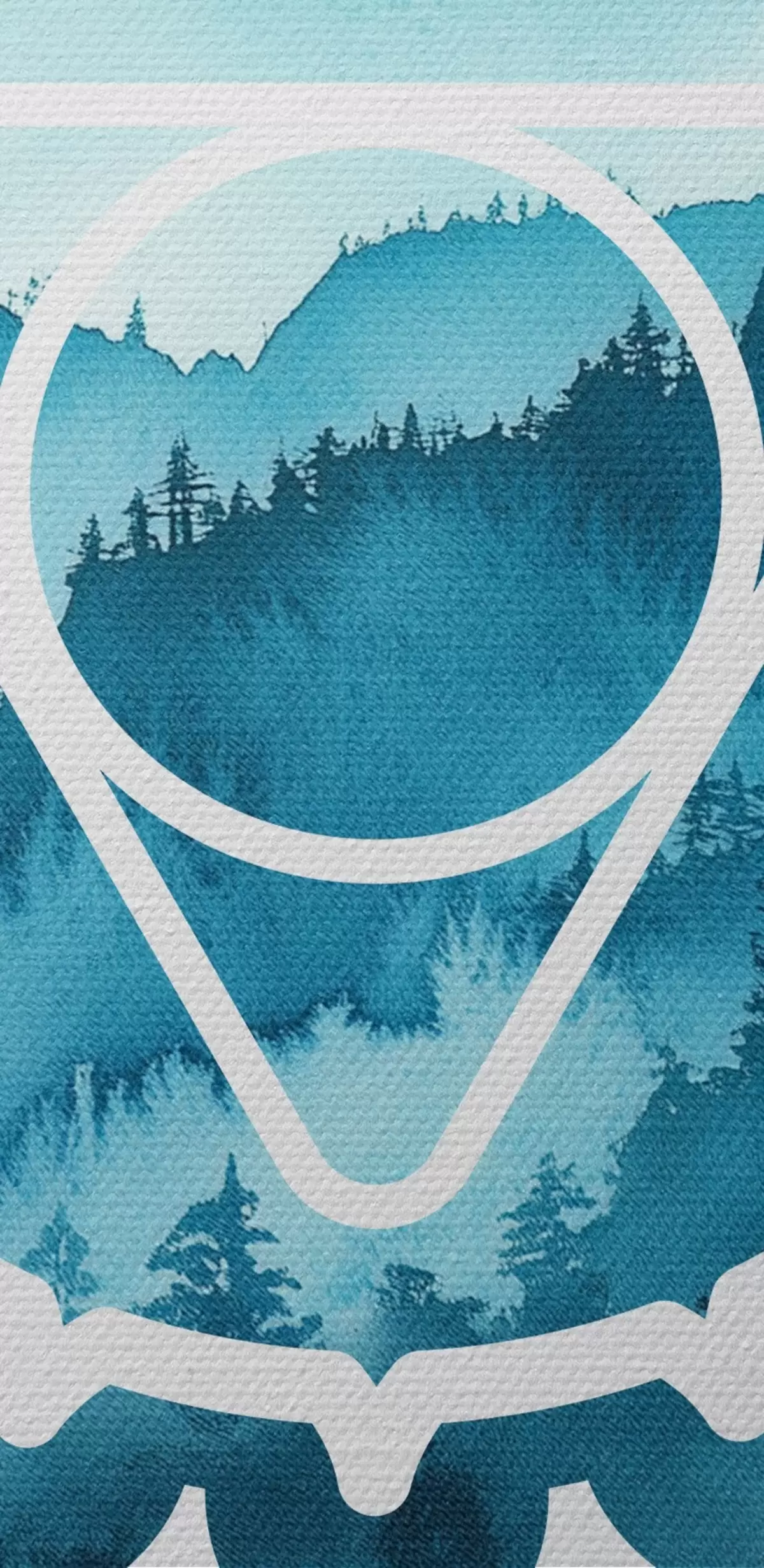 Peinture Vishuddha chakra, chakra bleu, ésotérique, méditation, bouddhisme, montagnes style aquarelle Art. s41884