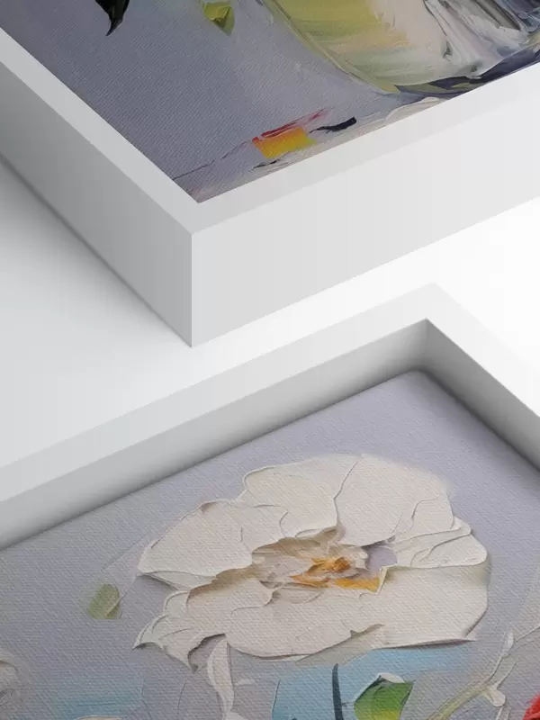 Trois types de matériaux peuvent être commandés : Economic Canvas - matériau dense et durable pour l'impression numérique, identique à la toile de peintre, surface imperméable, reproduction réaliste des détails, matériau à grain moyen. Premium Canvas - la texture ressemble à celle d'une toile de peintre (petits fils entrelacés). Reproduction douce et détaillée de l'image sur une surface mate. Eco-Premium - tissu 100 % coton de haute qualité. Grâce aux fibres naturelles de coton, le matériau est durable et résistant à l'usure. Excellente reproduction des couleurs et des détails.