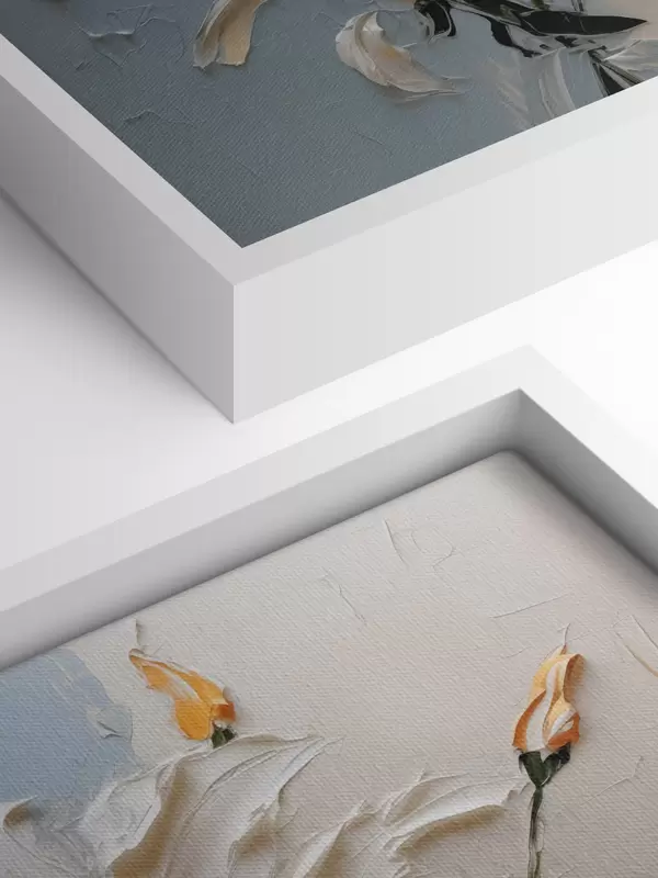 Trois types de matériaux peuvent être commandés : Economic Canvas - matériau dense et durable pour l'impression numérique, identique à la toile de peintre, surface imperméable, reproduction réaliste des détails, matériau à grain moyen. Premium Canvas - la texture ressemble à celle d'une toile de peintre (petits fils entrelacés). Reproduction douce et détaillée de l'image sur une surface mate. Eco-Premium - tissu 100 % coton de haute qualité. Grâce aux fibres naturelles de coton, le matériau est durable et résistant à l'usure. Excellente reproduction des couleurs et des détails.