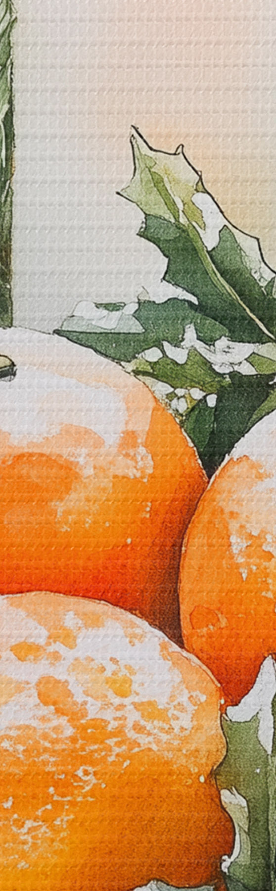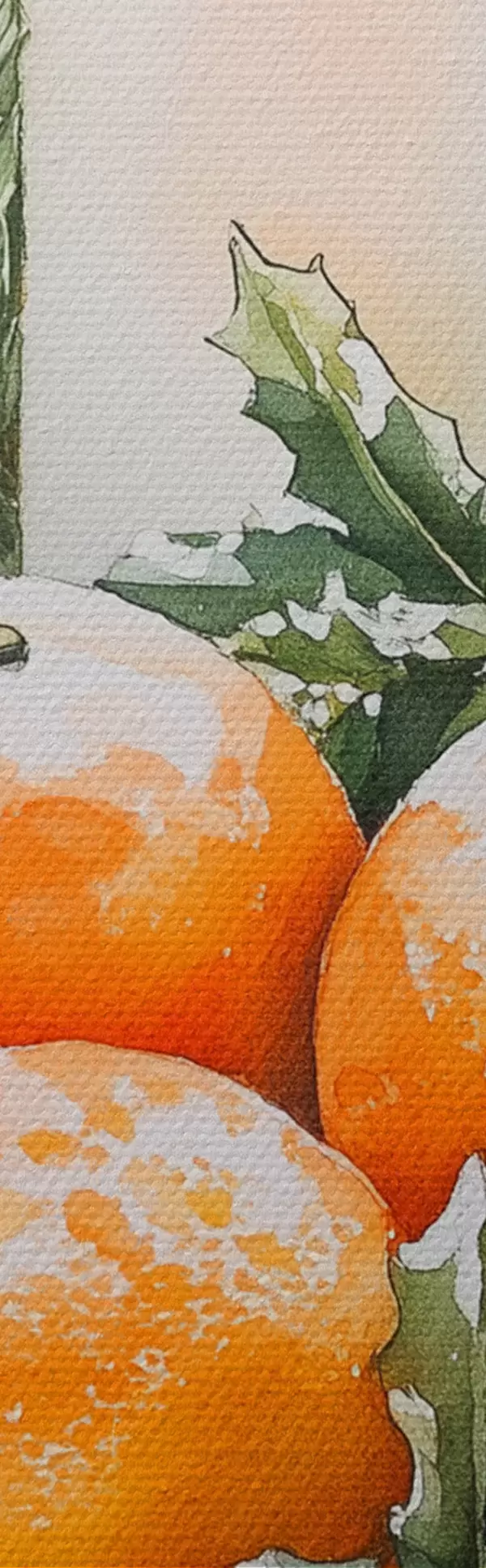 Peinture Décor de Noël avec bougies, sapin, cônes et oranges, style aquarelle Art. s41951
