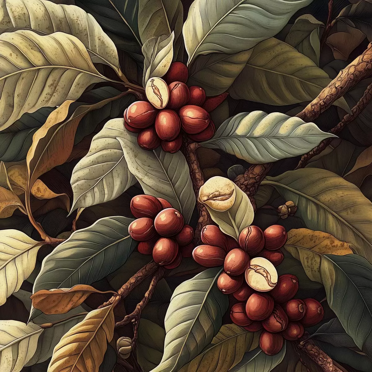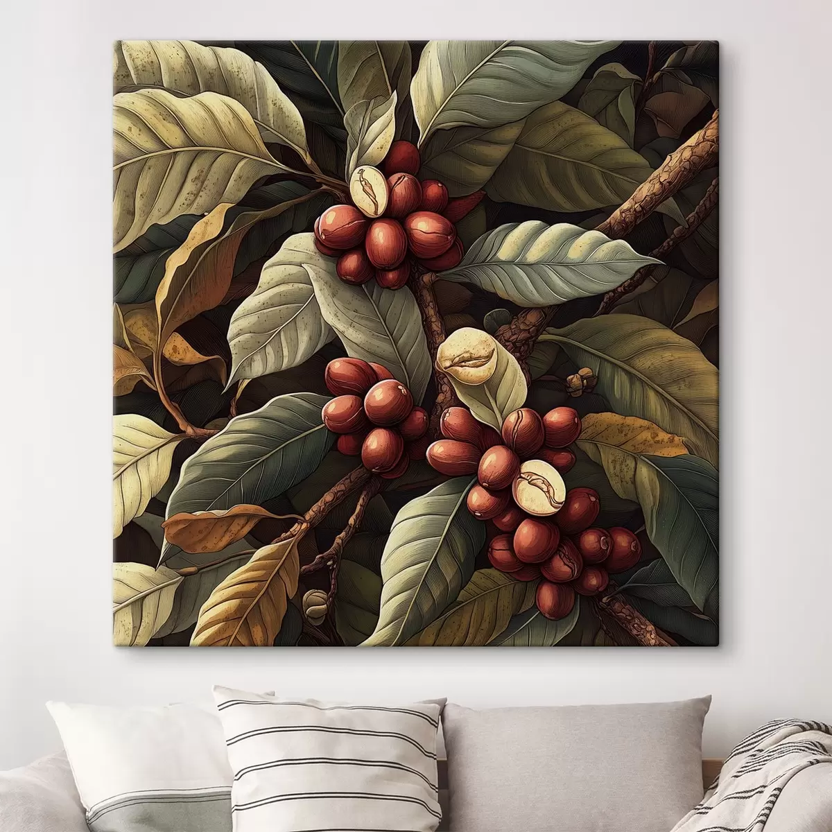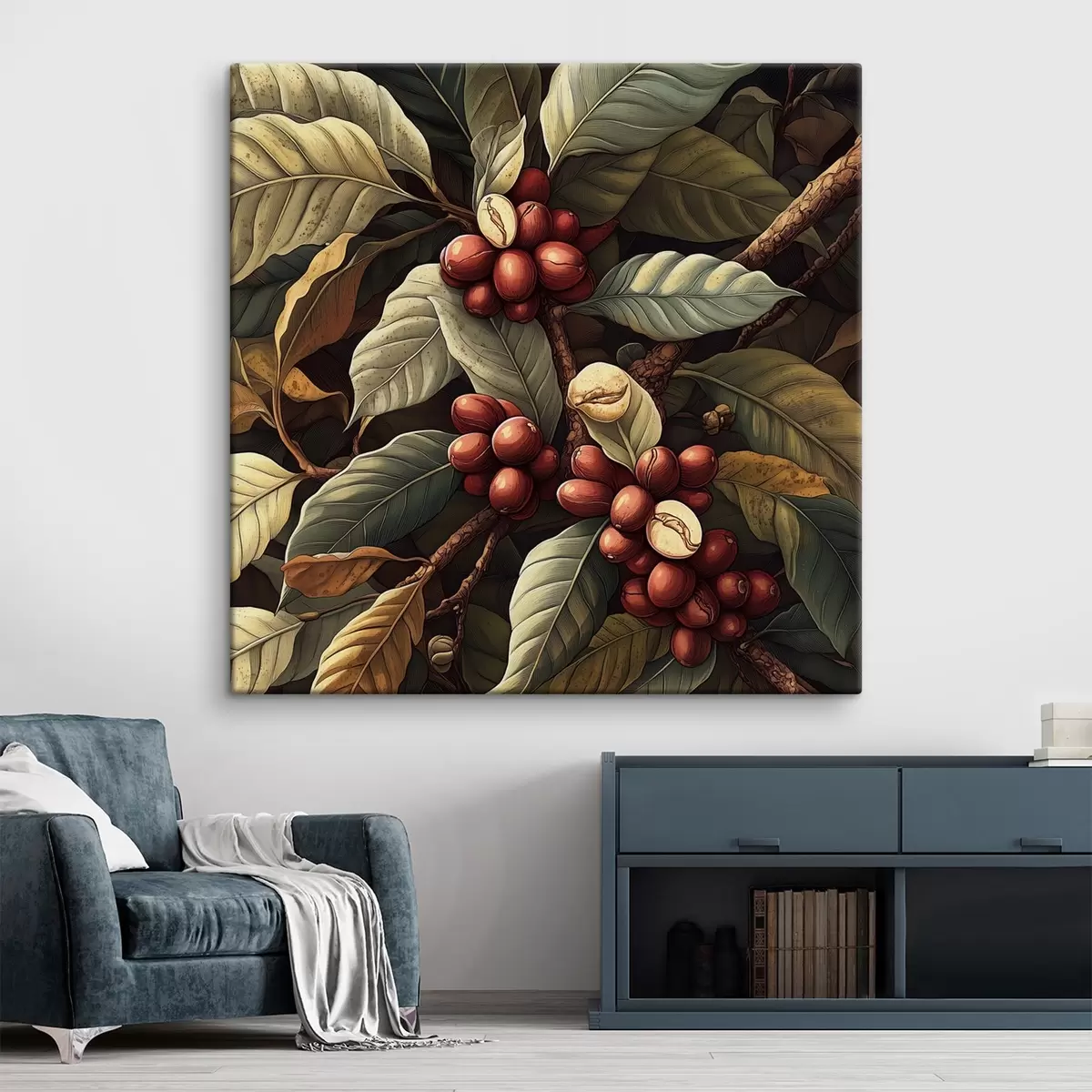 Peinture Caféier avec fruits et feuilles Art. s41980