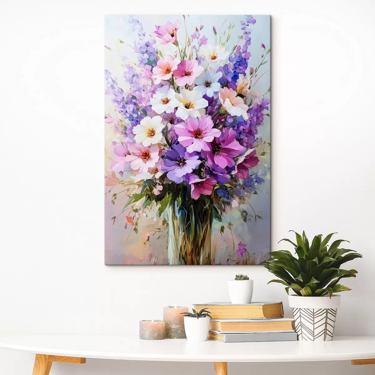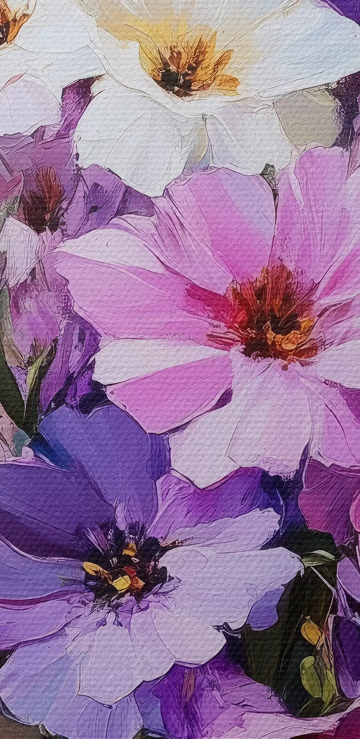 Peinture fleurs violettes et blanches dans un vase Art. s41999