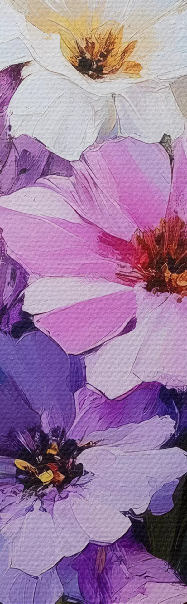 Trois types de matériaux peuvent être commandés : Economic Canvas - matériau dense et durable pour l'impression numérique, identique à la toile de peintre, surface imperméable, reproduction réaliste des détails, matériau à grain moyen. Premium Canvas - la texture ressemble à celle d'une toile de peintre (petits fils entrelacés). Reproduction douce et détaillée de l'image sur une surface mate. Eco-Premium - tissu 100 % coton de haute qualité. Grâce aux fibres naturelles de coton, le matériau est durable et résistant à l'usure. Excellente reproduction des couleurs et des détails.