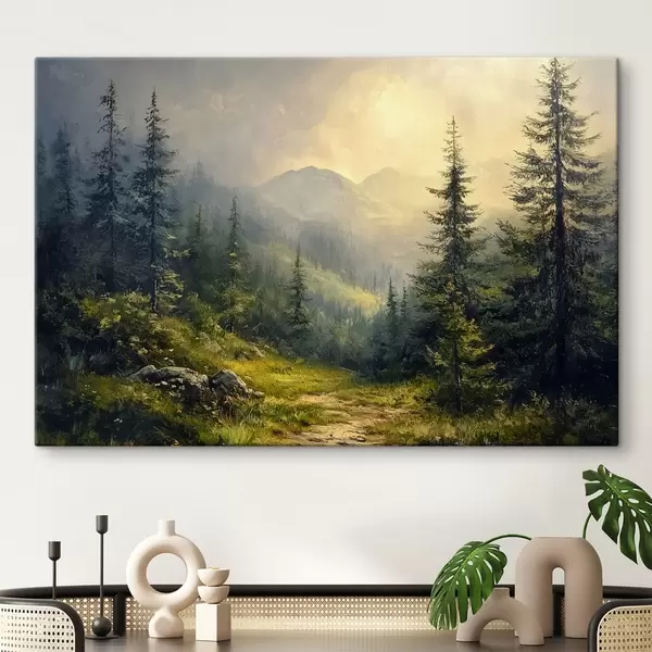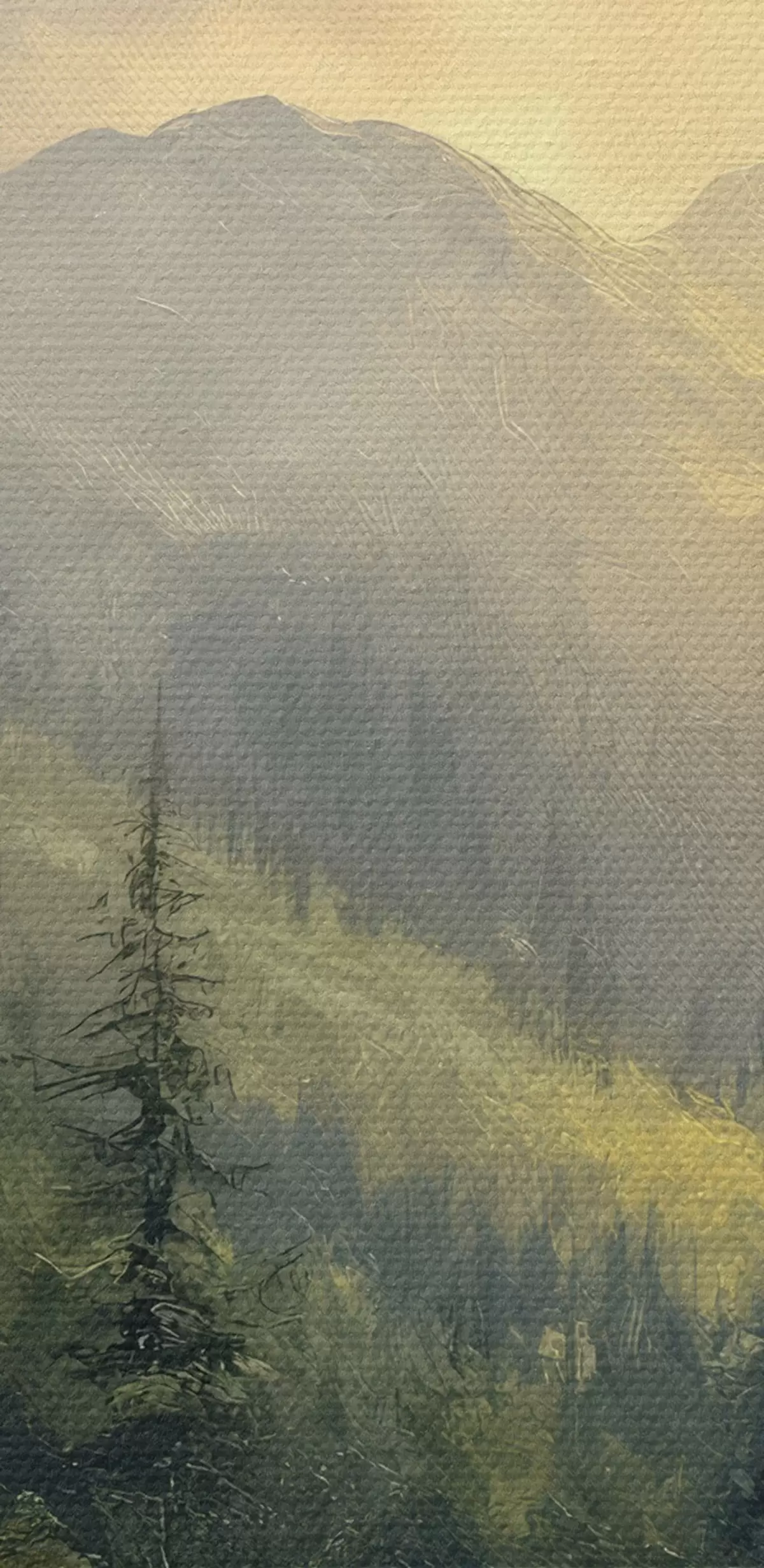 Peinture les montagnes dans le brouillard et les arbres Art. s42019