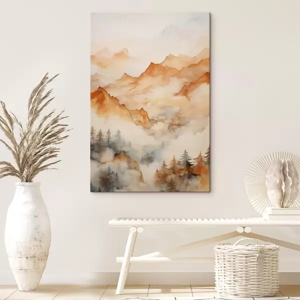 Peintures Forêt et montagnes imitation aquarelle, tons orangés s42119