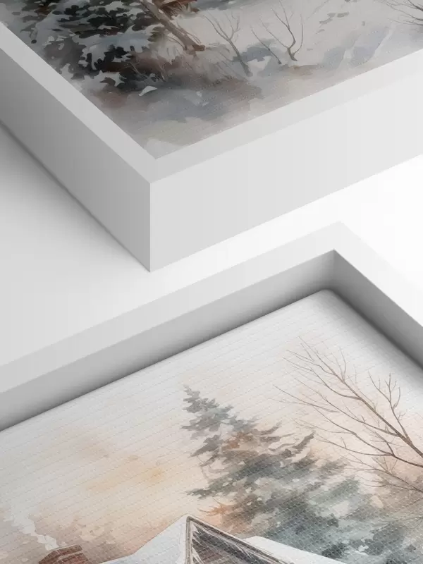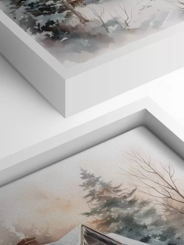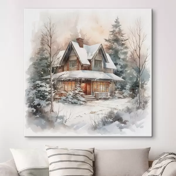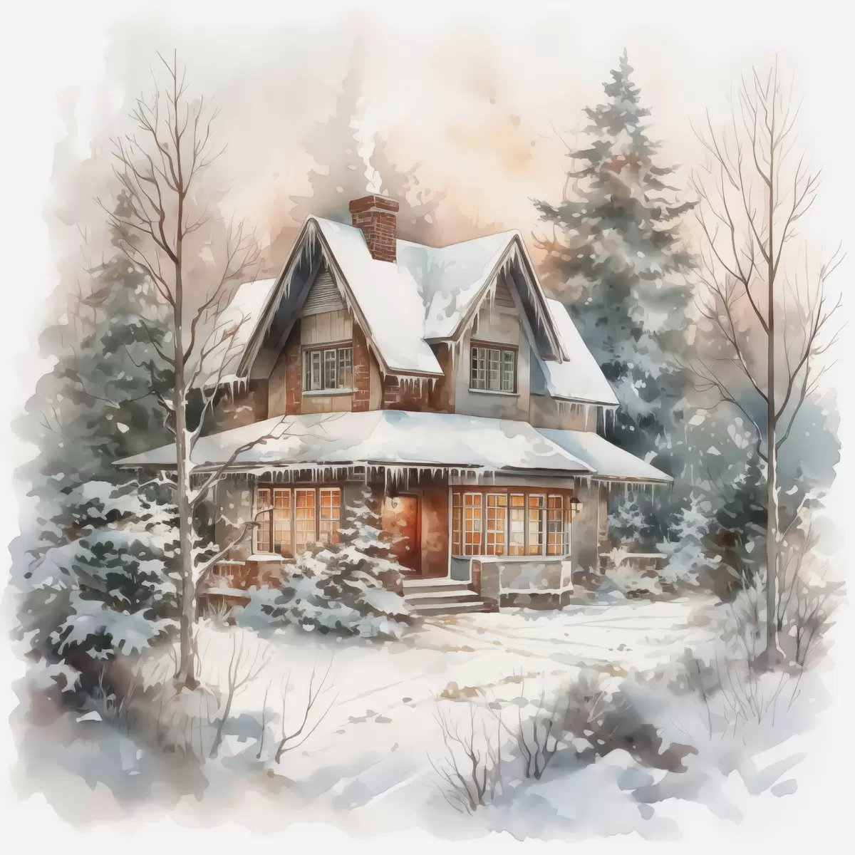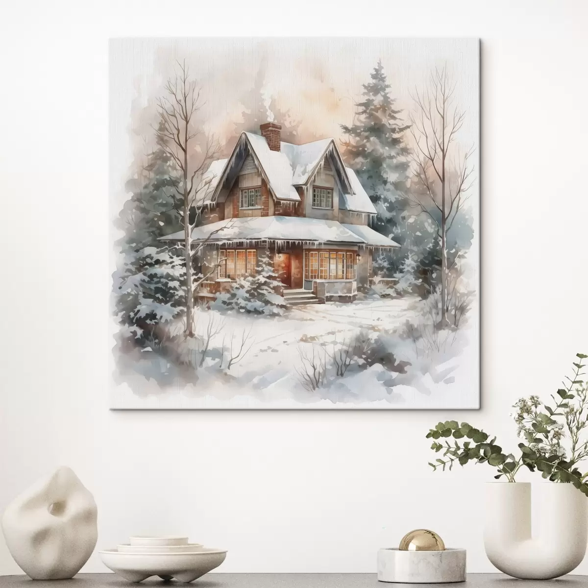 Peinture Maison dans une forêt enneigée imitation aquarelle Art. s42137