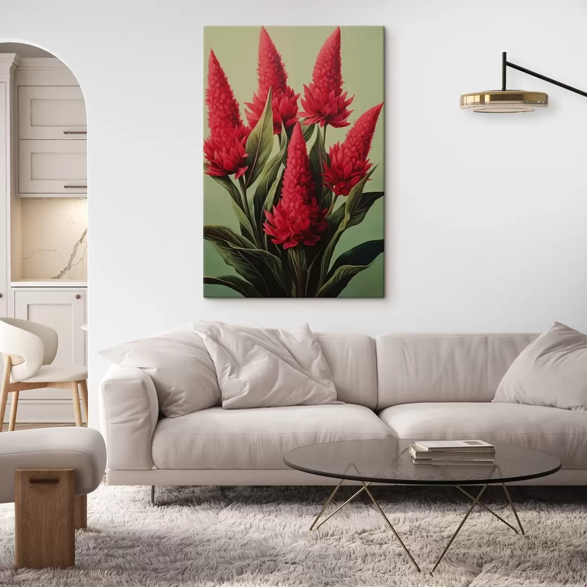 Peinture Fleurs rouges sur fond vert Art. s42166