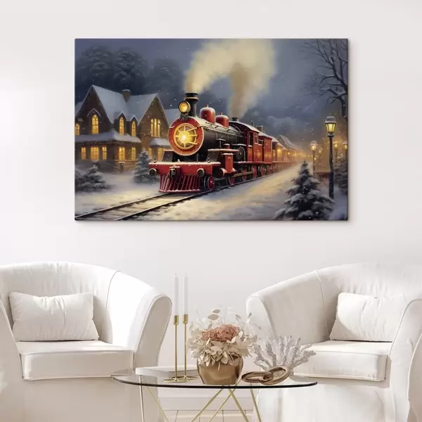 Peinture Le train de Noël dans un conte de fées hivernal Art. s42168