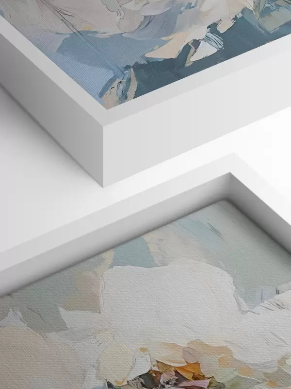 Trois types de matériaux peuvent être commandés : Economic Canvas - matériau dense et durable pour l'impression numérique, identique à la toile de peintre, surface imperméable, reproduction réaliste des détails, matériau à grain moyen. Premium Canvas - la texture ressemble à celle d'une toile de peintre (petits fils entrelacés). Reproduction douce et détaillée de l'image sur une surface mate. Eco-Premium - tissu 100 % coton de haute qualité. Grâce aux fibres naturelles de coton, le matériau est durable et résistant à l'usure. Excellente reproduction des couleurs et des détails.