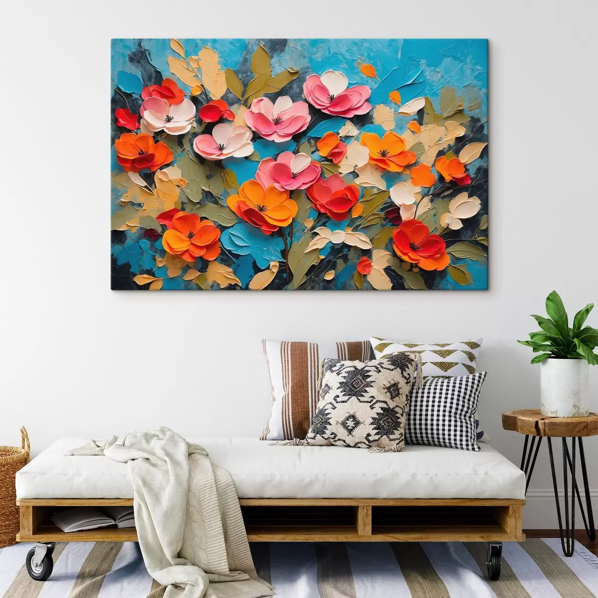 Trois types de matériaux peuvent être commandés : Economic Canvas - matériau dense et durable pour l'impression numérique, identique à la toile de peintre, surface imperméable, reproduction réaliste des détails, matériau à grain moyen. Premium Canvas - la texture ressemble à celle d'une toile de peintre (petits fils entrelacés). Reproduction douce et détaillée de l'image sur une surface mate. Eco-Premium - tissu 100 % coton de haute qualité. Grâce aux fibres naturelles de coton, le matériau est durable et résistant à l'usure. Excellente reproduction des couleurs et des détails.
