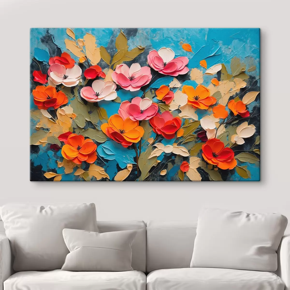 Peinture Fleurs et feuilles sur fond bleu Art. s42255