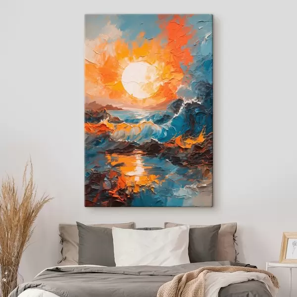 Peintures Mer agitée et soleil en peinture à l'huile s42257