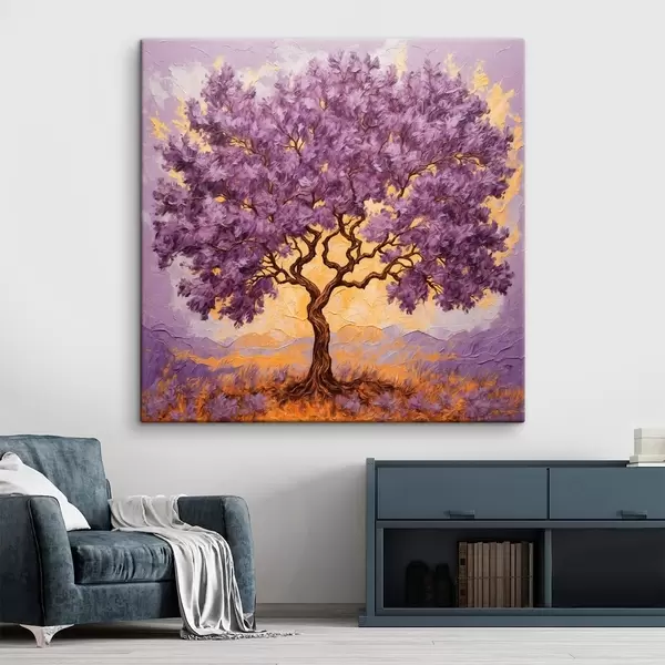 Peintures Arbre violet sur fond jaune-phyolotol s42272