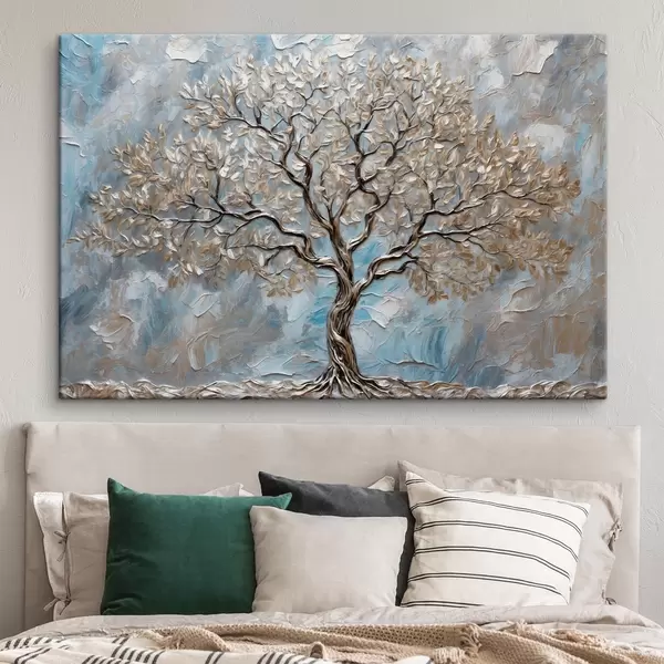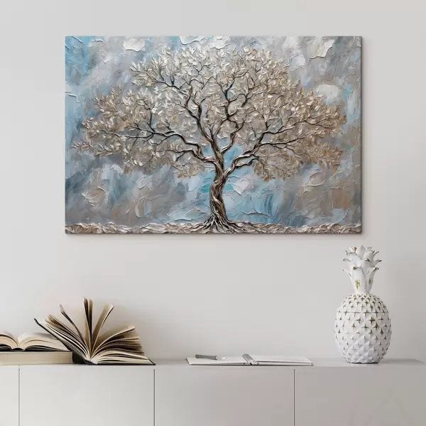 Peinture Arbre argenté sur fond bleu-gris Art. s42273