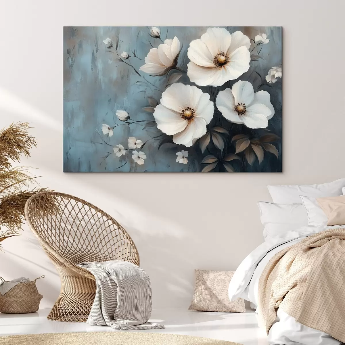 Peinture Fleurs blanches sur fond bleu Art. s42319