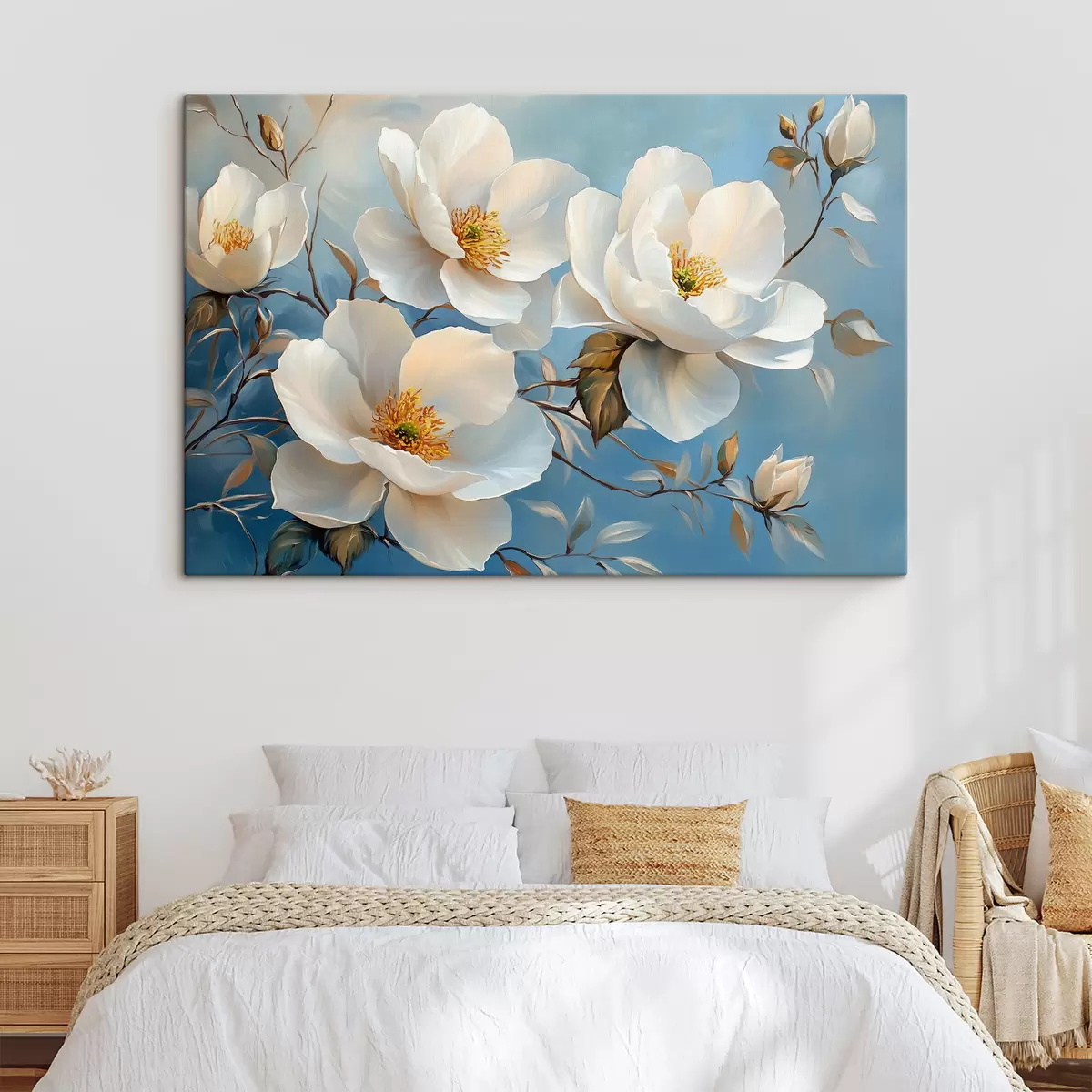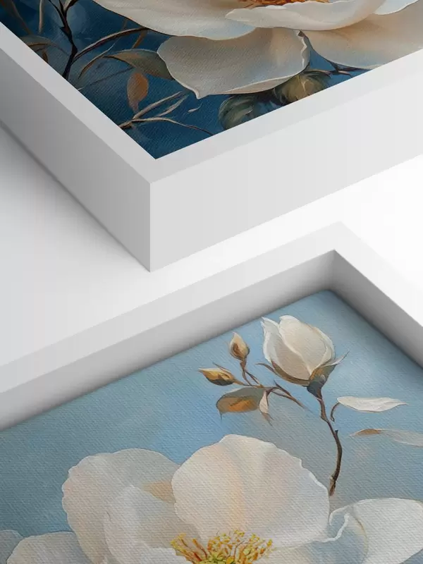 Peinture Grandes fleurs blanches sur fond bleu Art. s42321