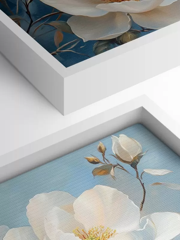 Trois types de matériaux peuvent être commandés : Economic Canvas - matériau dense et durable pour l'impression numérique, identique à la toile de peintre, surface imperméable, reproduction réaliste des détails, matériau à grain moyen. Premium Canvas - la texture ressemble à celle d'une toile de peintre (petits fils entrelacés). Reproduction douce et détaillée de l'image sur une surface mate. Eco-Premium - tissu 100 % coton de haute qualité. Grâce aux fibres naturelles de coton, le matériau est durable et résistant à l'usure. Excellente reproduction des couleurs et des détails.